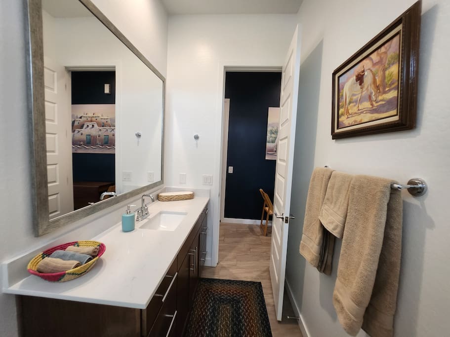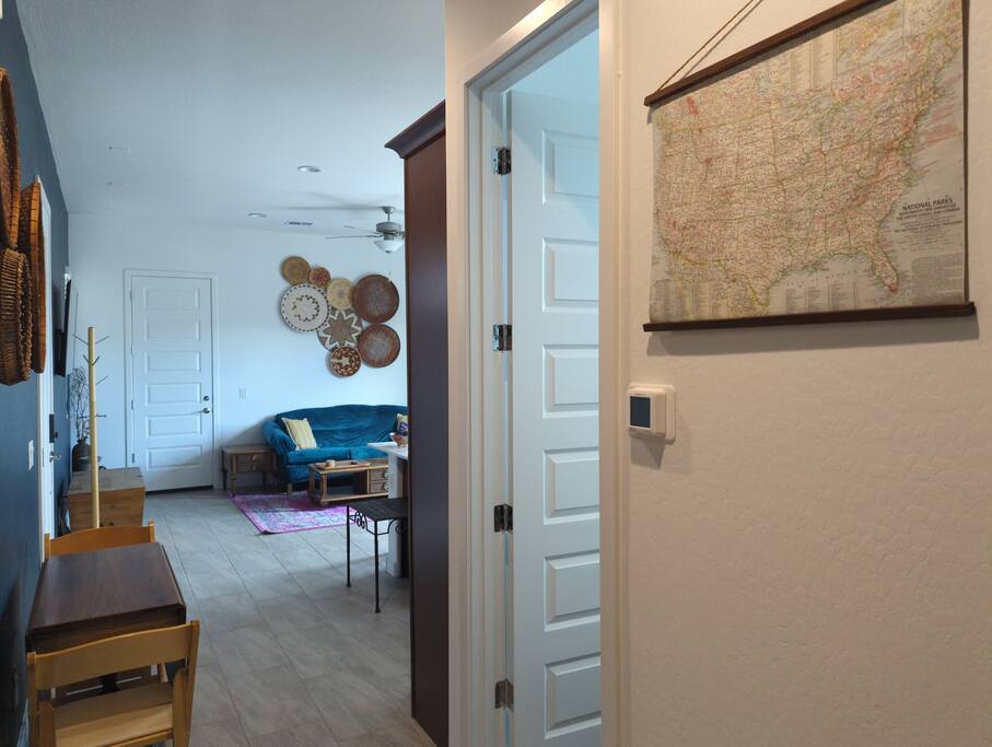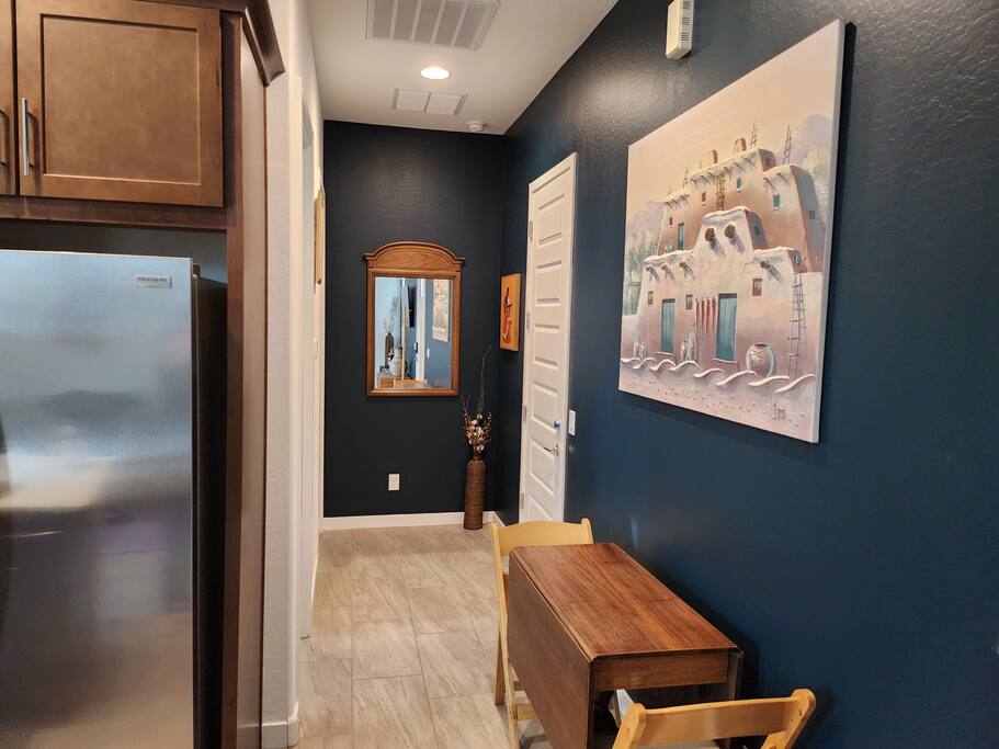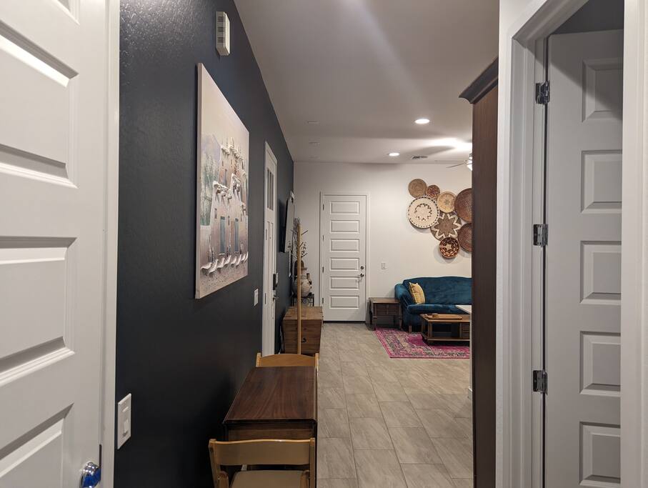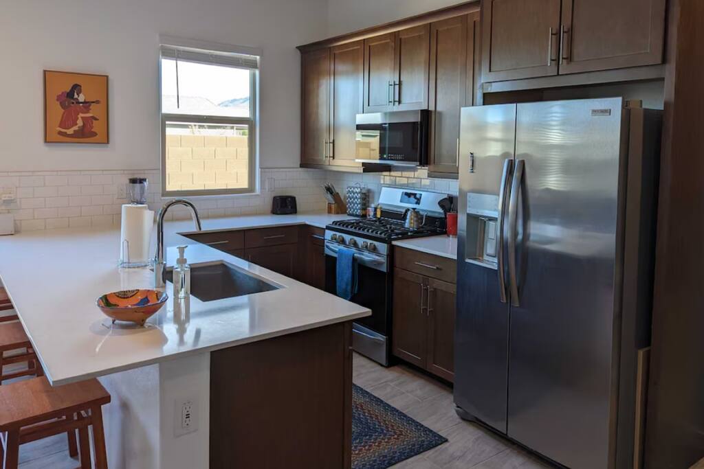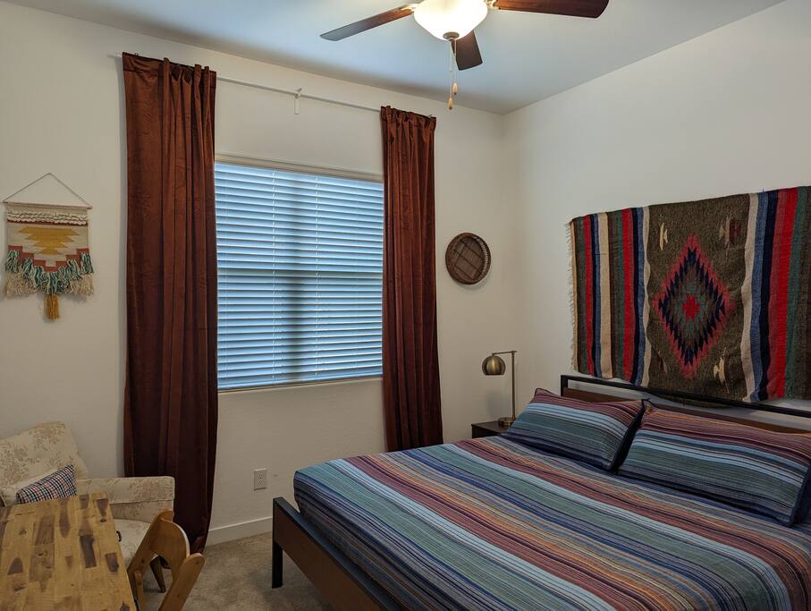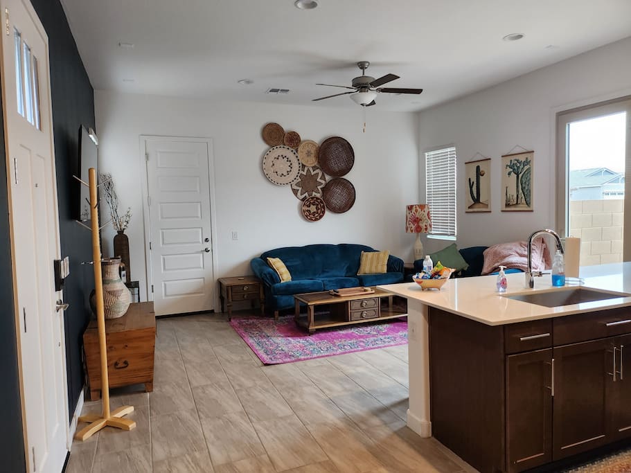 Why you'll love it here: - The Great Outdoors, The Greater Indoors: Wake up to a stunning mountain vista, then choose your adventure: hike nearby trails, play a round of golf, or explore the buzz of downtown Phoenix (only 16 mins away). - Total Convenience: We’re perfectly positioned. Within two miles, you’ll find every essential: a major freeway, supermarkets, a gym, medical facilities, big box stores, and some great restaurants you'll definitely want to check out. - The Space to Breathe: At nearly 700 sq ft, it’s the perfect size to unwind, recharge, and feel completely at ease for the next task or adventure ahead. My place is perfect for last minute getaways, solo retreats, long-term stays, or work-cations. Book now and experience Phoenix living the way it should be. ---------------------------- For more detail on what to expect related to amenities, read ahead. :) - Full gourmet kitchen with new stainless steel appliances! Included are a microwave, 2 door fridge with water and ice maker, dishwasher, a farmhouse style steel sink with garbage disposal, 5 burner gas stove, coffee pod coffee maker AND a French Press. We also offer a full set of pots, pans, toaster, blender, and a variety of cooking utensils along with basic cooking ingredients like oil, spices, salt an pepper, etc. - Large master bedroom with a very comfortable king size bed - Full walk-in closet - In-unit washer/dryer combo - Large bathroom with huge tiled spa shower - A king size bed and 2 rollaway beds to sleep up to 4 guests comfortably - 2 Roku TVs - Free private parking space - Private garage for storage (Upon Request) - Ceiling Fans - Private backyard w/ gas BBQ and outdoor furniture - Stylish and modern southwest décor